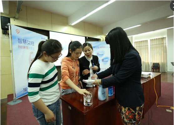为了帮助女大学生变身精致的女神,5月11日,由心系系列活动项目办公室主办、广州蓝月亮实业有限公司协办、上海大学社区学院承办开展的2017年度“智慧女性 我的家居我做主”首场大学生沙龙在上海大学举行。资深服务与礼仪专家、国家注册高级礼仪培训师刘缜和蓝月亮衣物护理专家黄柳菲受邀,分别从彩妆技巧与服装搭配、各种材质衣物护理及保养等方面,与充满活力的女大学生进行了深入的沟通和交流。